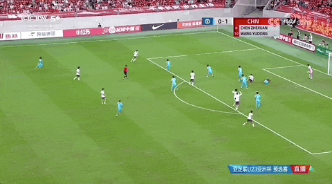 开场就差点完成得分,让中国队的小伙子们的进攻欲望变得更加强烈。始终掌握着场上的主动权,但并没有能够完成破门。比赛第23分钟,蒯纪闻带球突破,横敲中路,拜合拉木将球一让,毛伟杰跟进射门,可惜被对方守门员扑出。